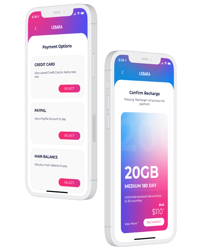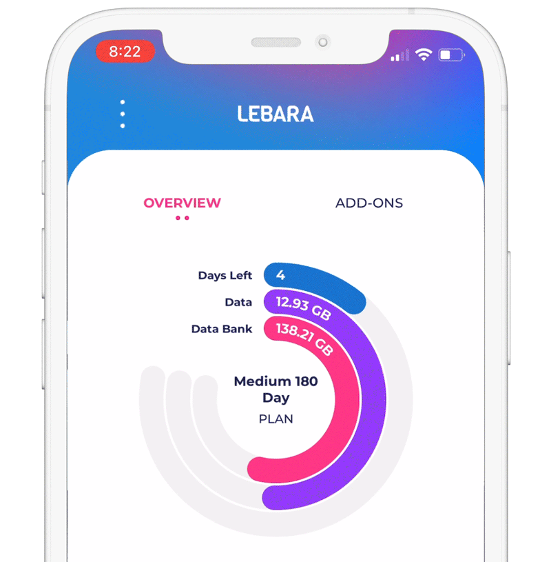 - All features and functionality available from the MyLebara page is now available in app except SIM swap (lost or broken SIM replacement).