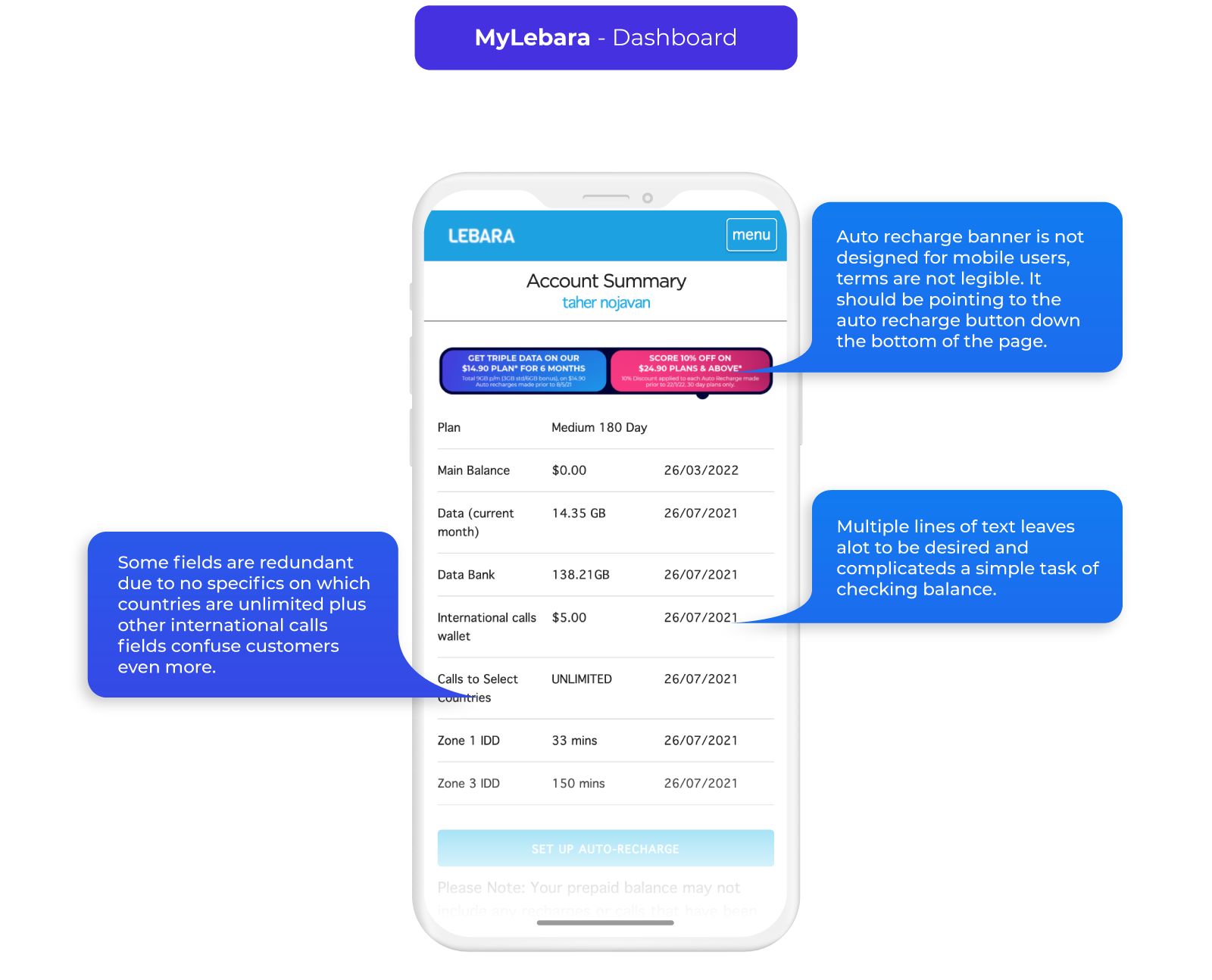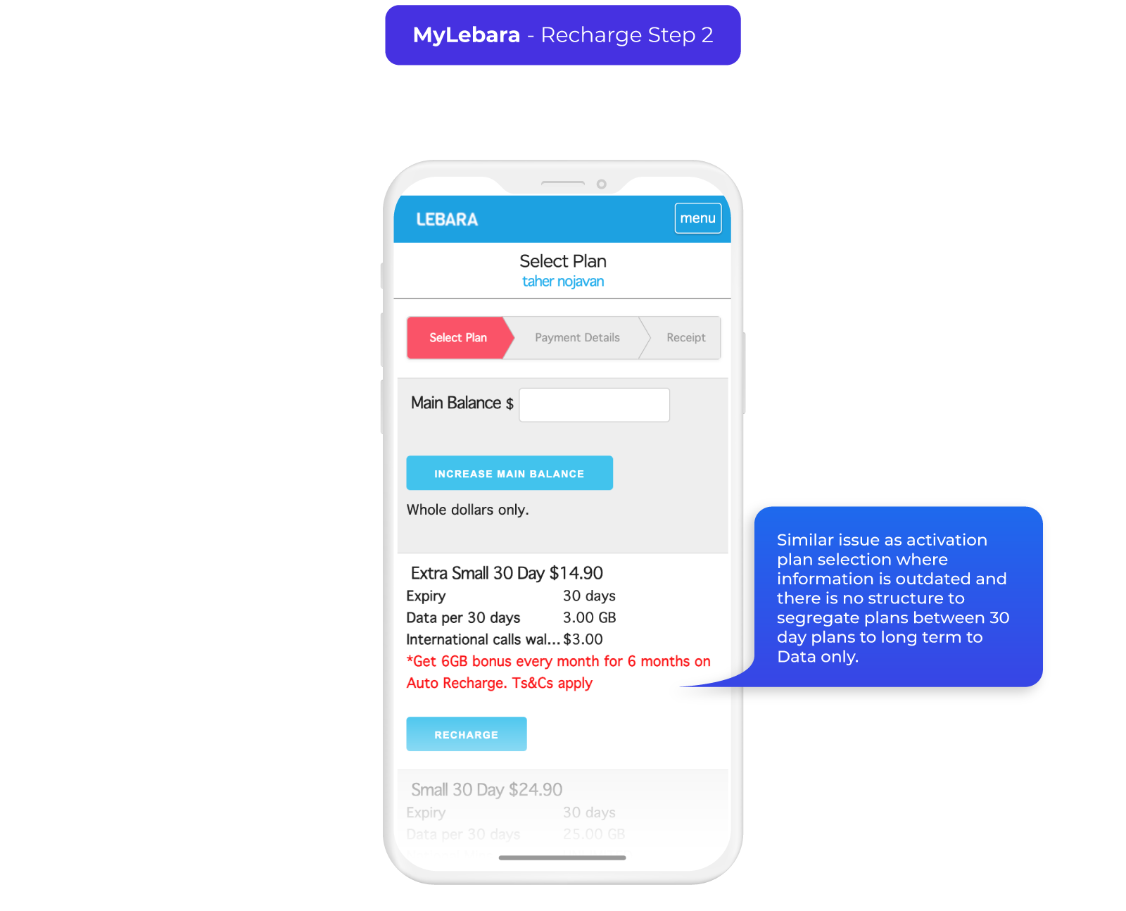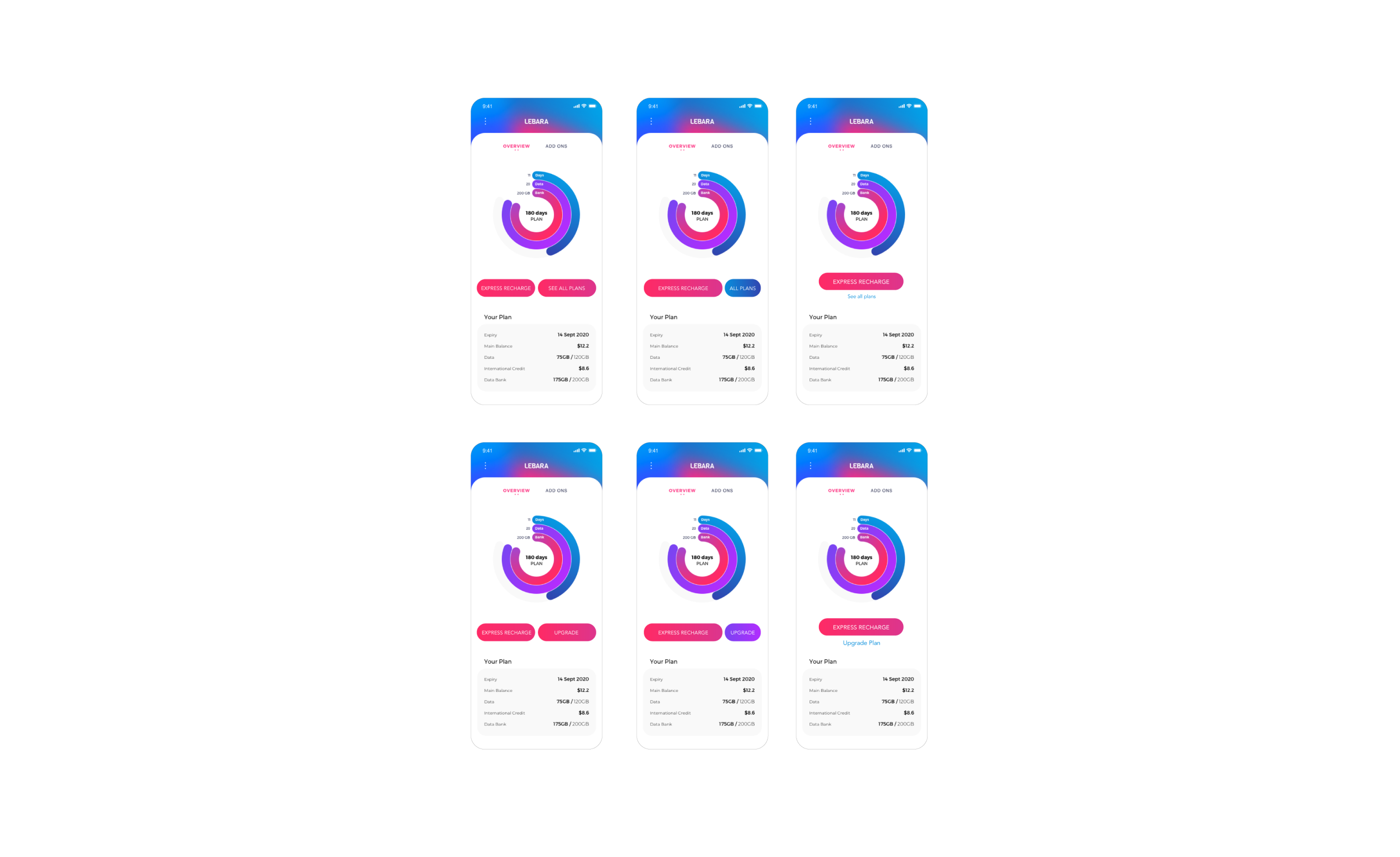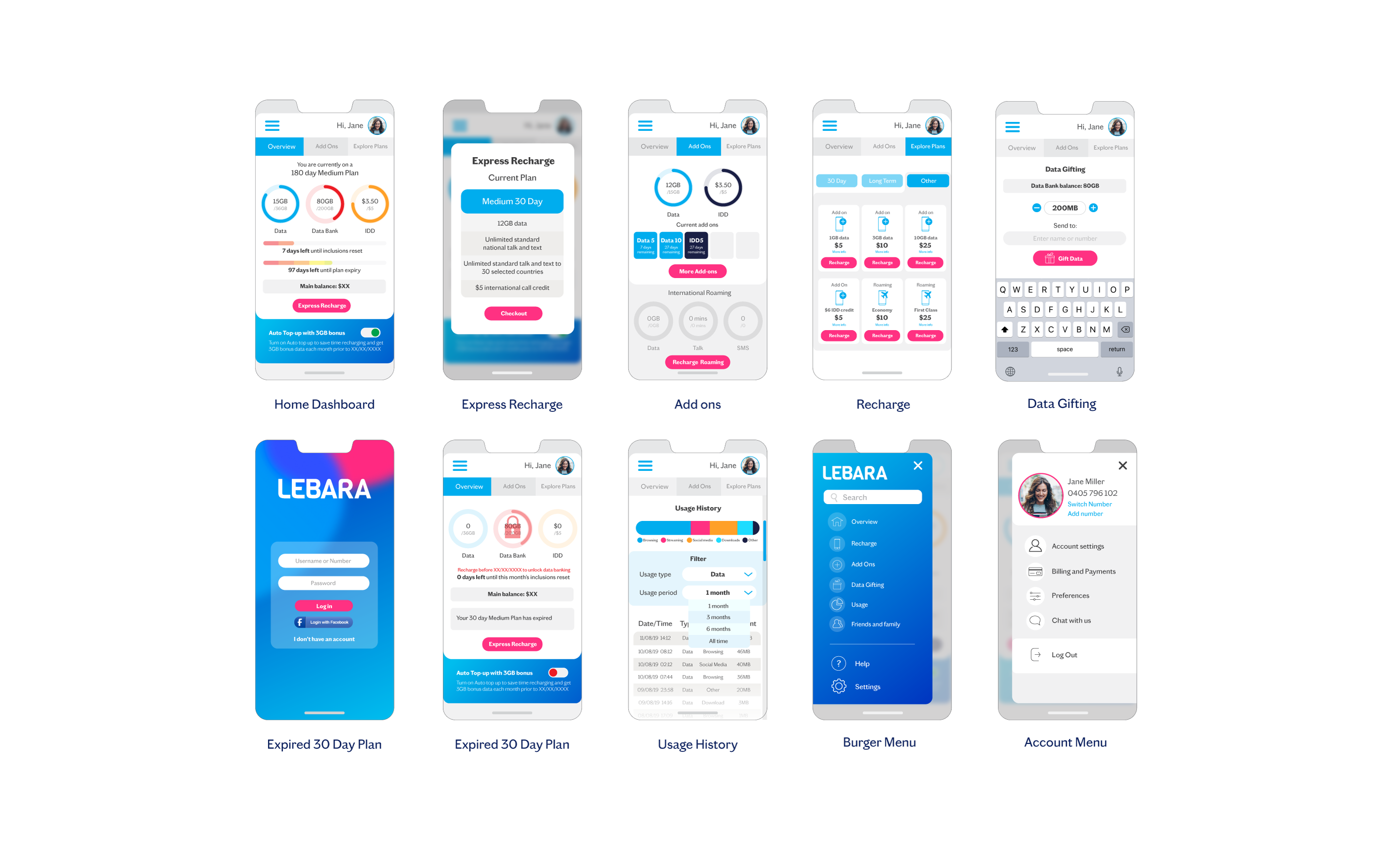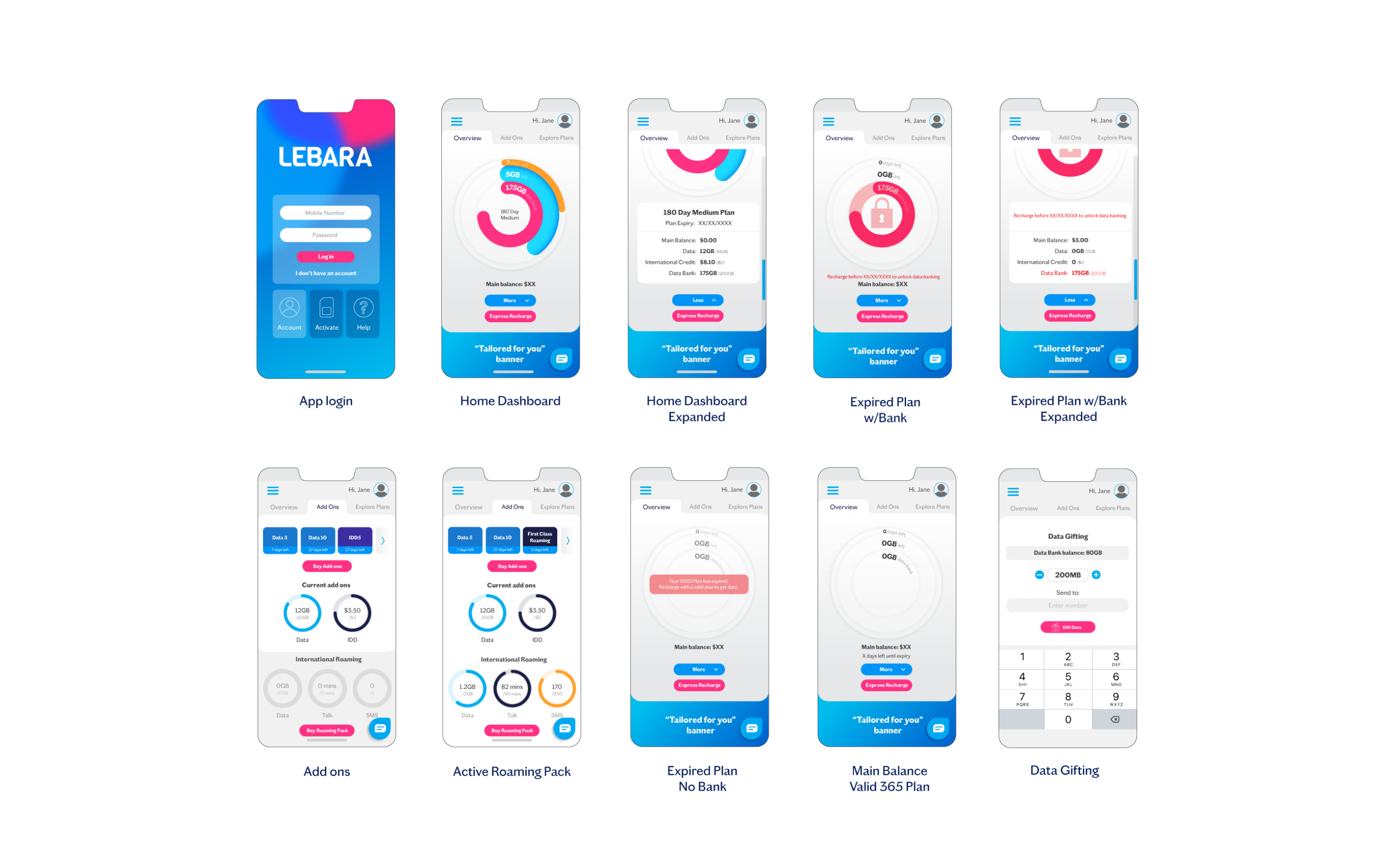 - Create a visually clear MyLebara experience with information on Key plan feature pillars: Expiry, Data Banking and Data Usage.