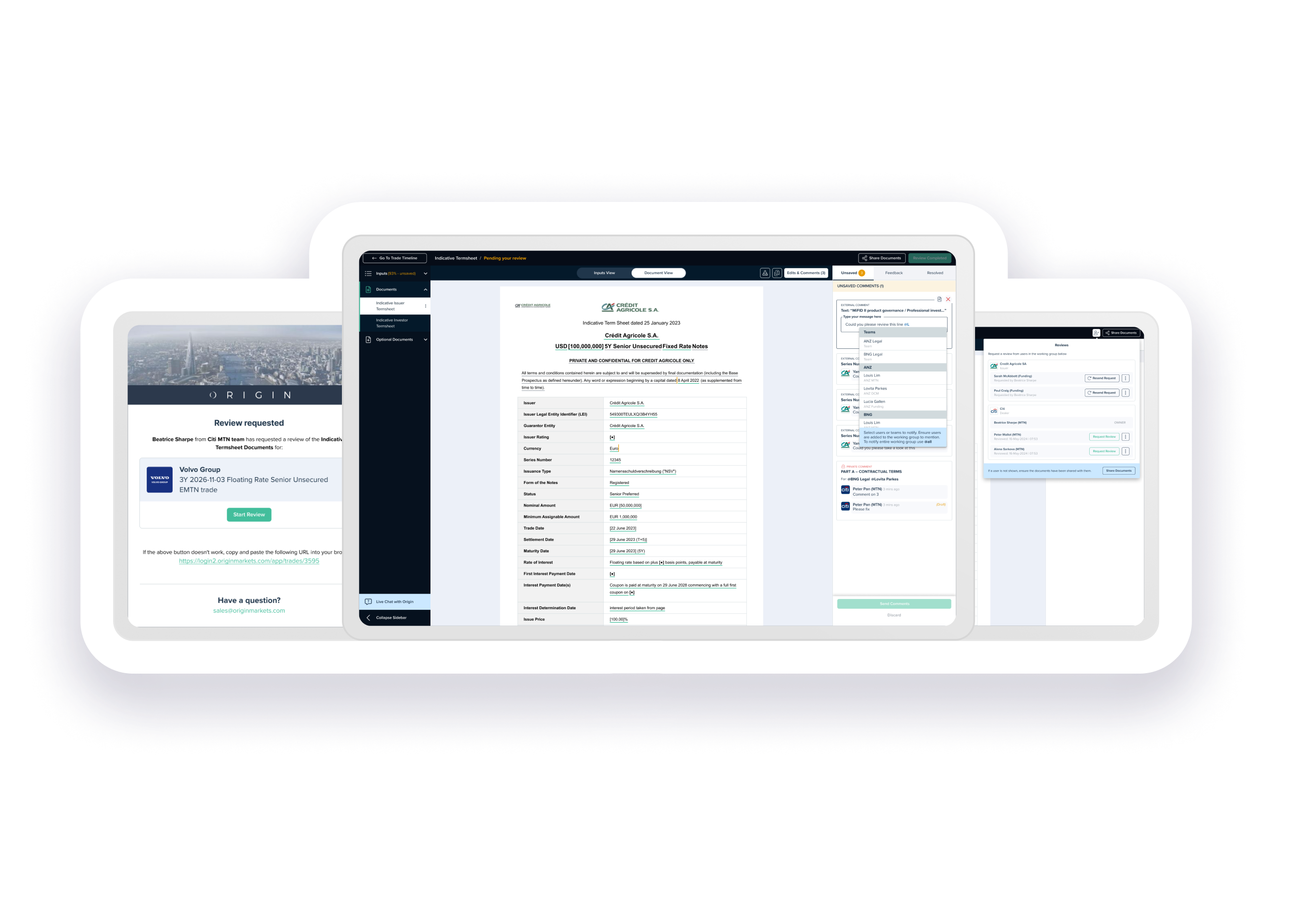 Origin Markets is an issuance platform focused on digitising the global debt capital markets handling the entire life cycle of an issuance from pricing of bonds up to generating trade documentation and listing.
