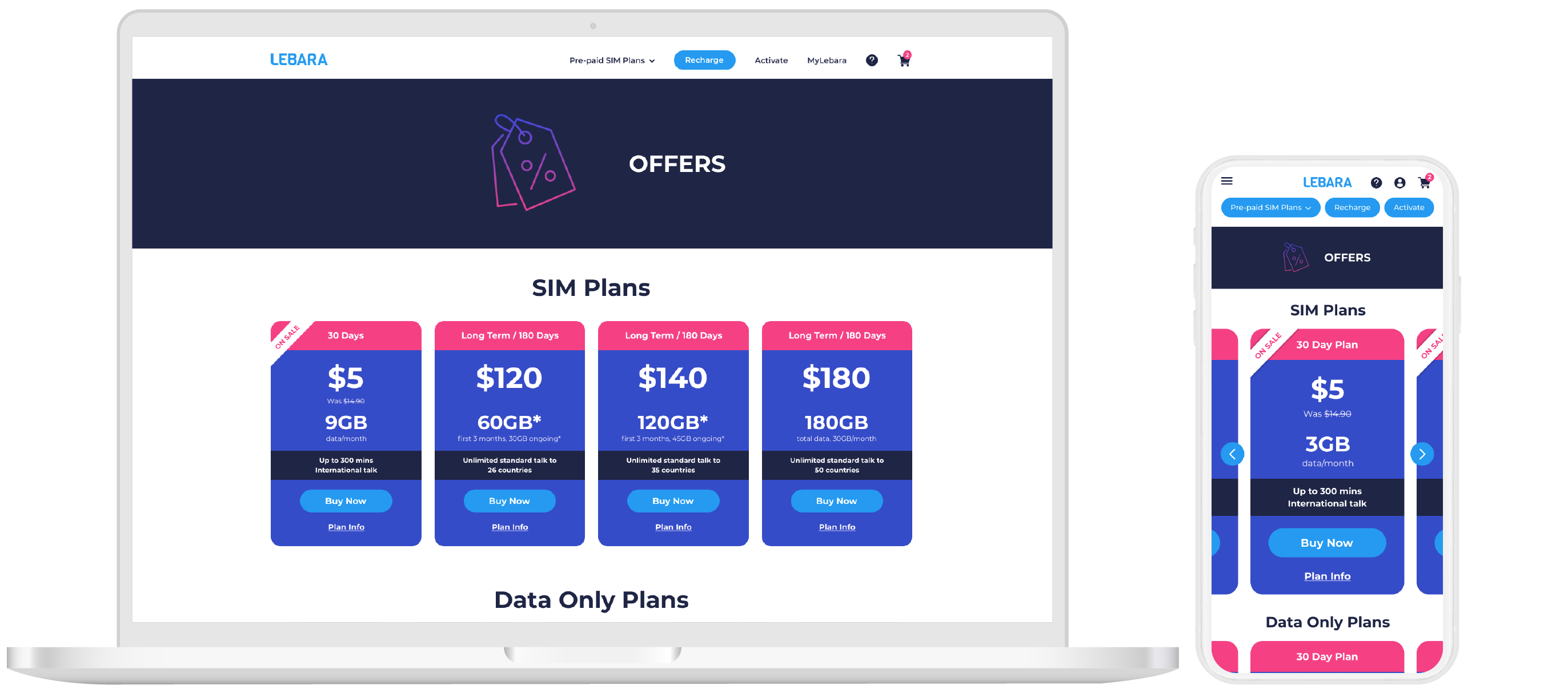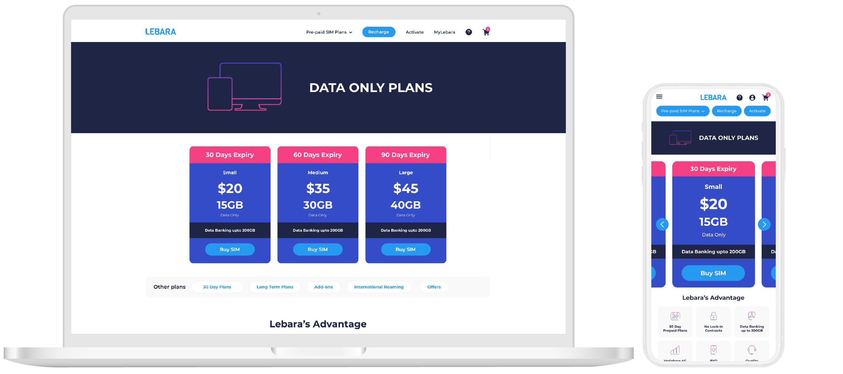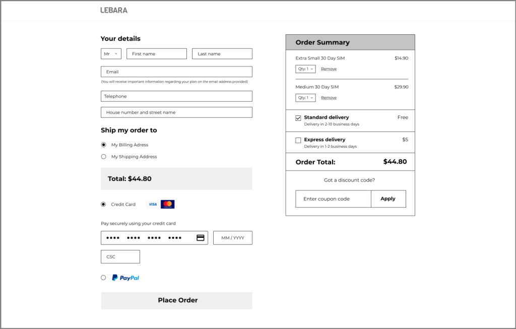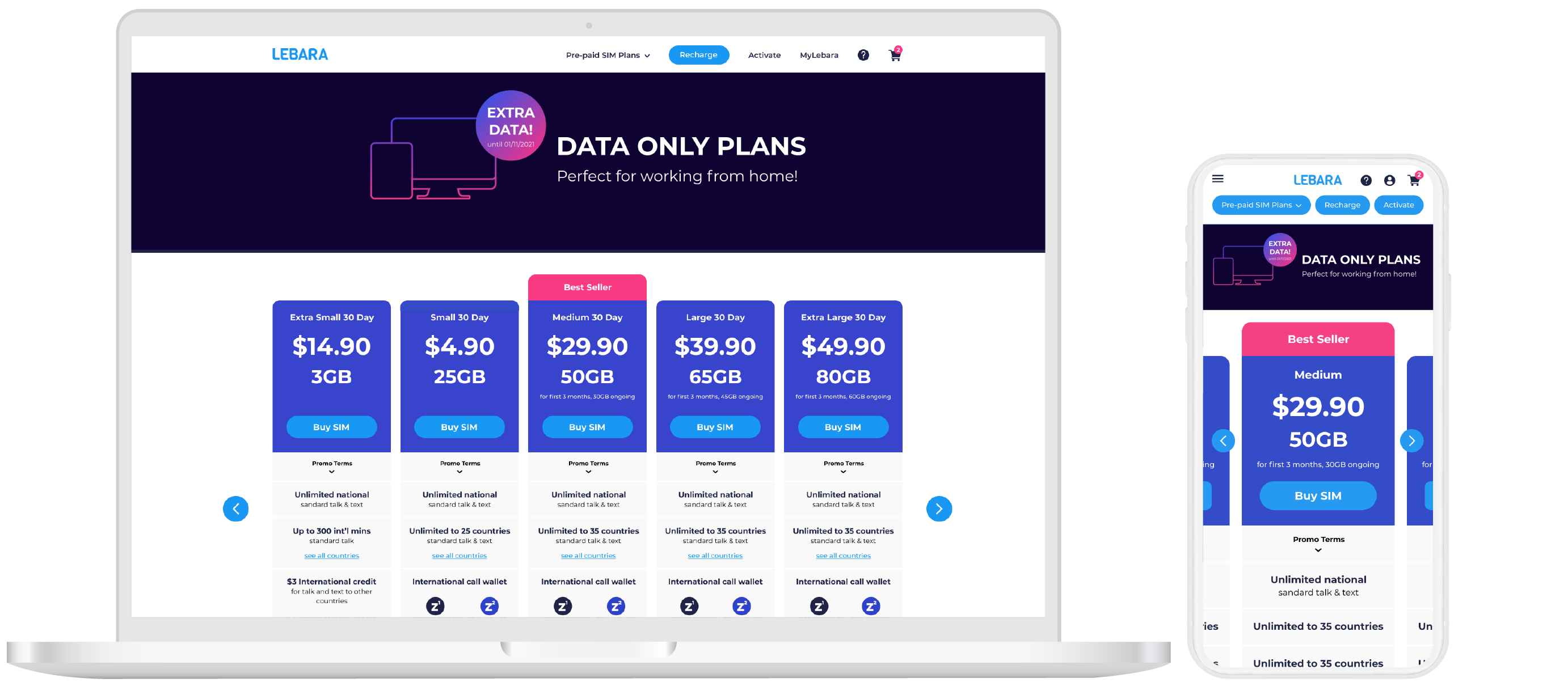 - Minimal use of colour to separate sections of the plan in order to keep focus on Price, Data and the Buy SIM button.