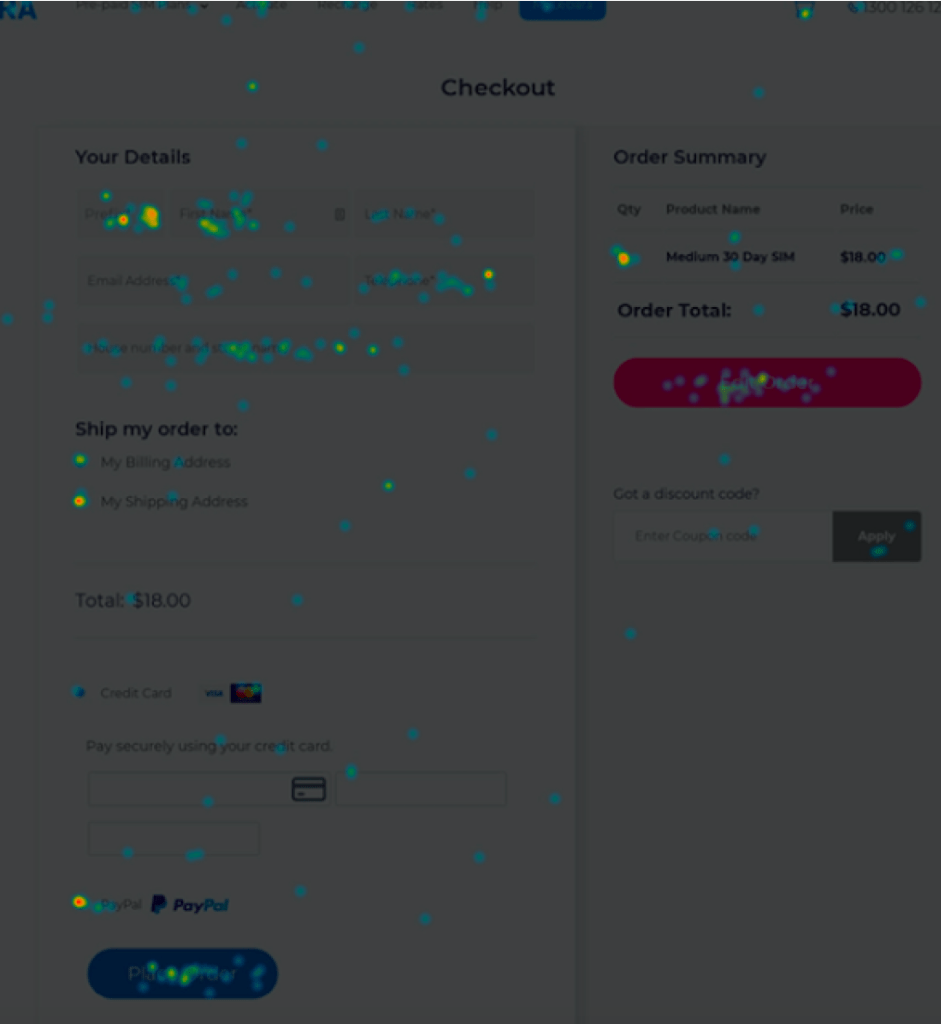 One example of the mobile checkout page issues is the cart having an additional order. On desktop, the most popular hotspot of clicks is the “Order Now” button (11% of clicks). The second most popular button is the “Edit Order” button with 9% of clicks.