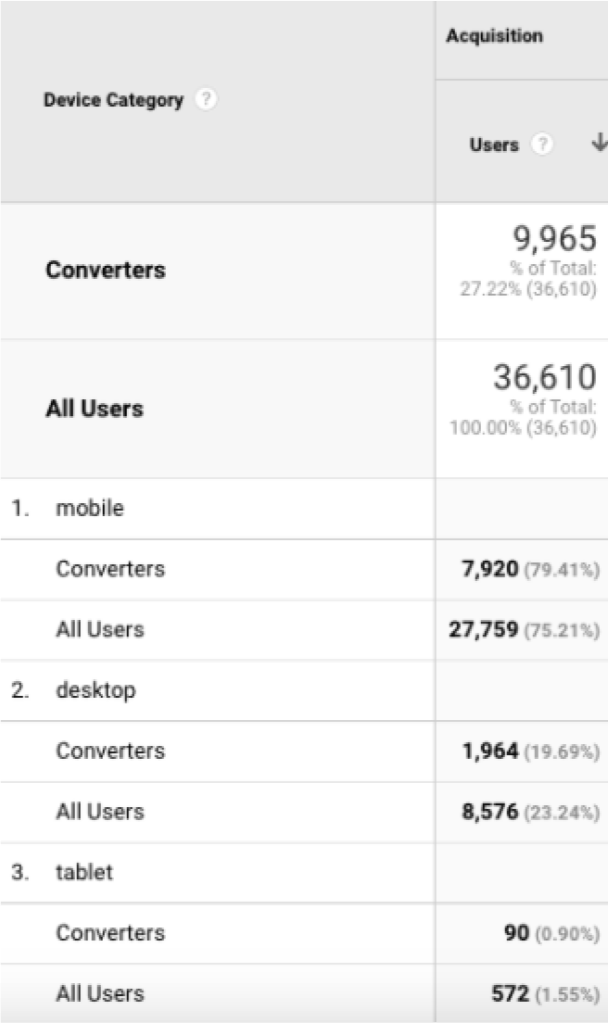 Majority of our users are using mobile (75%), and also convert on mobile (74%).